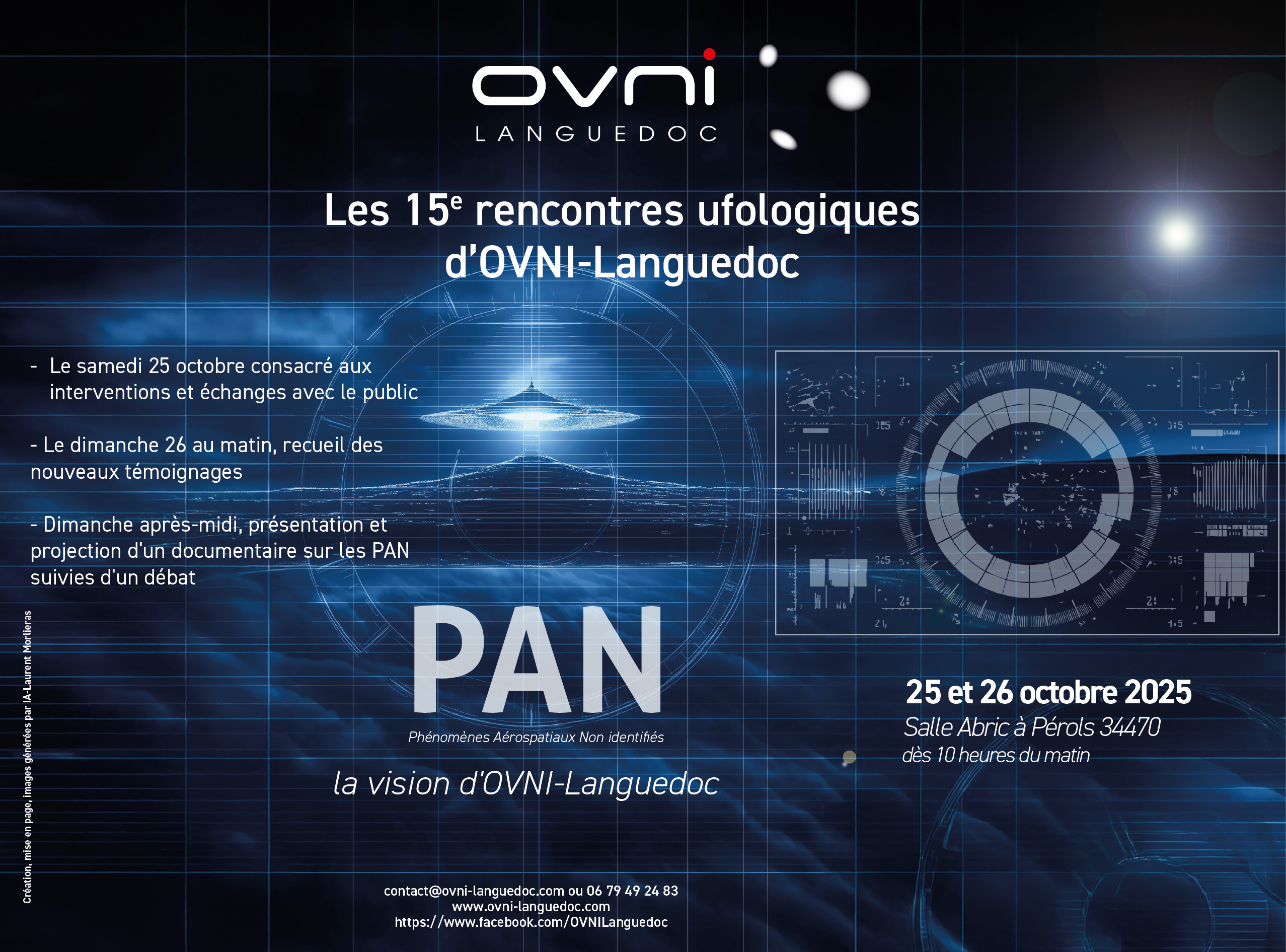 « La vision d’OVNI-Languedoc ». Les 15° Rencontres ufologiques d’OVNI-Languedoc ouvrent leurs portes les 25 et 26 octobre à Pérols. Venez explorer les mystères de l’univers et le phénomène OVNI.